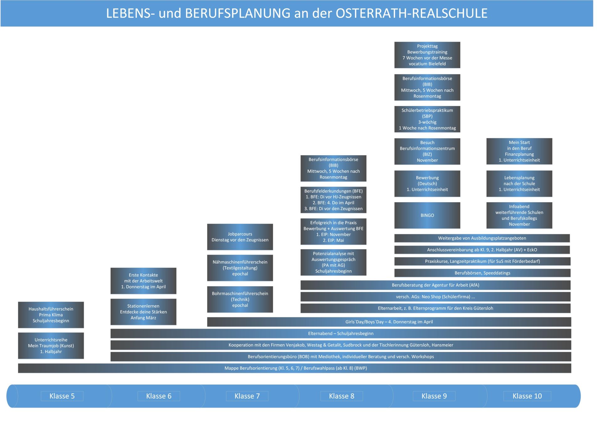 Aktuelles zu Ausbildungsplätzen, Messen und weitere Informationen rund um die Berufsorientierung befinden sich im Schaukasten in der Eingangshalle vor der Bibliothek.