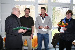 „Er war ein sehr engagierter Kollege, der viel bewirkt und das Schulleben maßgeblich mitgestaltet hat“, resümierte Schulleiter Detlef Flaschel in seiner Rede. „Die Zusammenarbeit mit ihm habe ich immer als sehr fruchtbar erlebt“. Auch Klassenpflegschaftsvorsitzende Renate Uhlig betonte: „Herr Heuel ist über die Jahre immer der Gleiche geblieben und hat sich seine Begeisterung und Liebe zu den Mitmenschen bewahrt“. Heuels Faible für Literatur griff der Lehrerrat in seinem Beitrag auf und wandelte das Gedicht „Der Erlkönig“ in amüsante Anekdoten über Heuels Schulalltag um. Doch dass nicht nur die Kollegen, sondern auch die Schüler ihren Lehrer vermissen werden, brachten die Klassensprecher der 10e, die Heuel zuletzt geleitet hatte, und die Schülerspecherinnen Anne Huneke und Laura Albur zum Ausdruck.