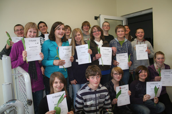 Rheda-Wiedenbrück (La/Pla). Als weiteren Baustein der Gewaltprävention an der Osterrath-Realschule haben sich 16 Schülerinnen und Schüler des 8. Jahrgangs in den vergangenen 3 Monaten zu Konflikt-Mediatoren ausbilden lassen. Nach 25 Trainingsstunden bei der Sozialpädagogin Tina Becker vom Arbeitskreis soziale Bildung und Beratung aus Münster (asb) konnte den zukünftigen Mediatoren ein Zertifikat überreicht werden.