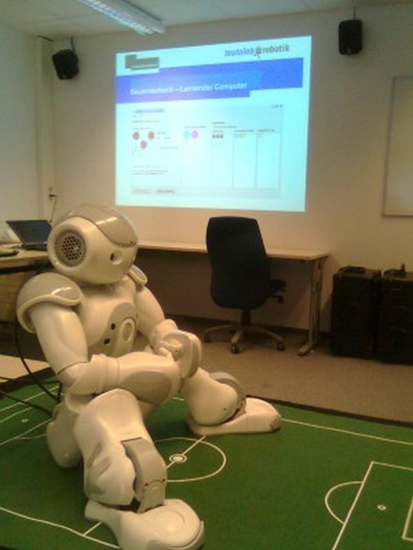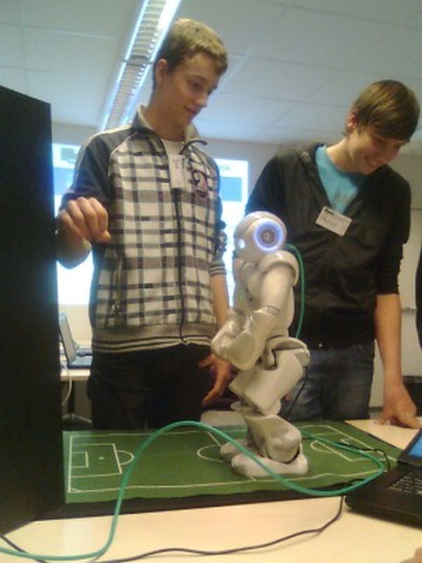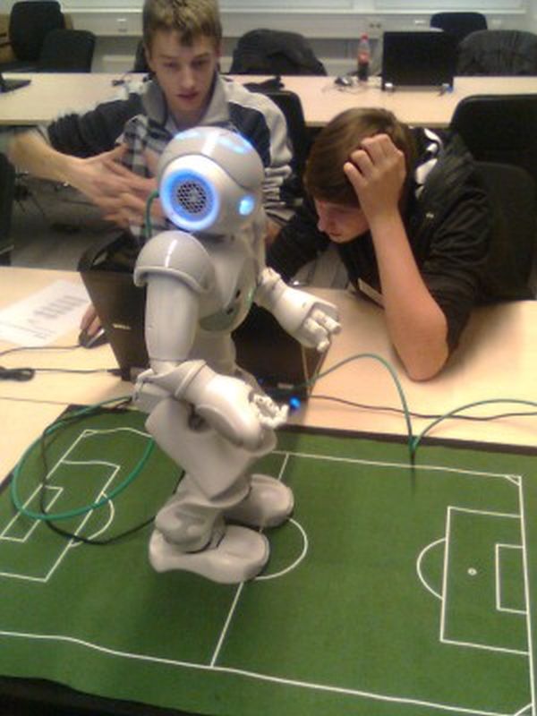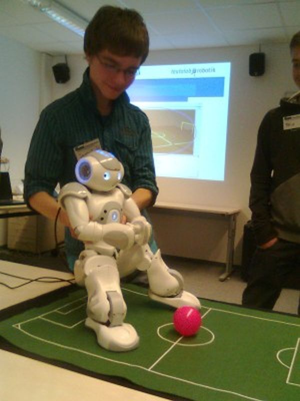 An einem Nachmittag können die Schüler hautnah Einblicke in die aktuelle Forschung mit lernenden Robotern gewinnen. Roboter sollen dem Menschen als Assistenten dienen oder in gefährlichen Situationen helfen. Dabei ist es sehr wichtig, dass sie auch direkt vom Menschen lernen.Dazu entwickeln die Teilnehmer des Workshops über entsprechende Programmieraufgaben (Bauernschach, Tore schießen) Lernstrategien für den kleinen Roboter Nao. Im Mittelpunkt der Teamarbeit steht der Programmablauf und natürlich das Testen. Freude kommt auf, wenn der 60 Zentimeter große Nao Anlauf nimmt, den bereitgestellten Ball in ein Tor befördert und anschließend noch laut singend in die Hände klatscht.