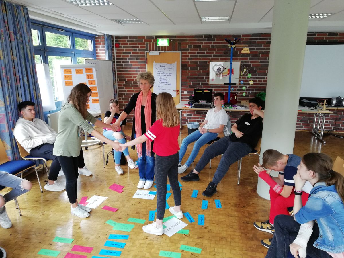 Nach 40 Unterrichtsstunden, mit einem 2-tägigen Kompaktseminar in Münster bei der Kommunikationstrainerin Sibylle Rosenberger, stehen die frisch ausgebildeten Coaches den neuen 5-Klässlern nach den Sommerferien als Ansprechpartner zur Verfügung. Sie können vermittelnd bei Problemen behilflich sein und kleine Streitigkeiten auf Wunsch der betroffenen Schüler schlichten. Darüber hinaus sind sie in der Lage, Spiele und Übungen für Schülergruppen zur Stärkung des sozialen Miteinanders anzuleiten.
