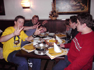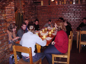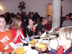 Als wir um sieben Uhr morgens alles im Bus verstaut hatten, fuhren wir los. Nach elf Stunden Busfahrt erreichten wir unser "Hotel". Die Begeisterung hielt sich bei den meisten in Grenzen. Nachdem wir unsere Zimmer bezogen hatten, gingen wir im historischen Keller (Restaurant) essen.