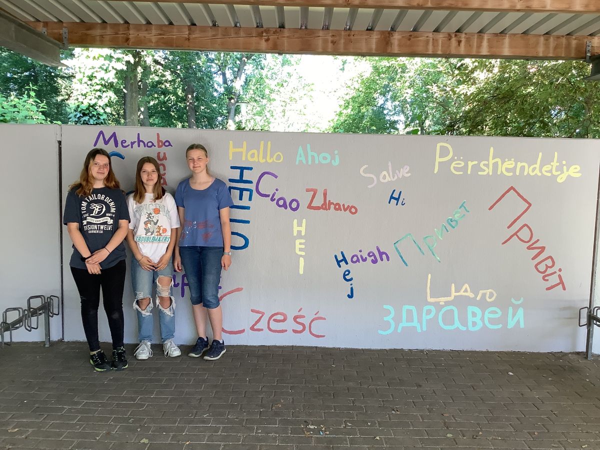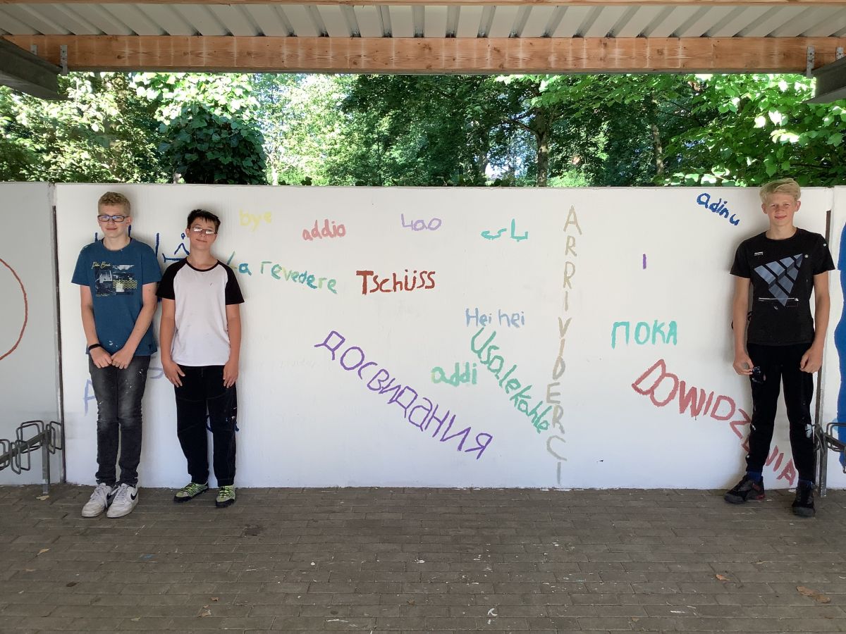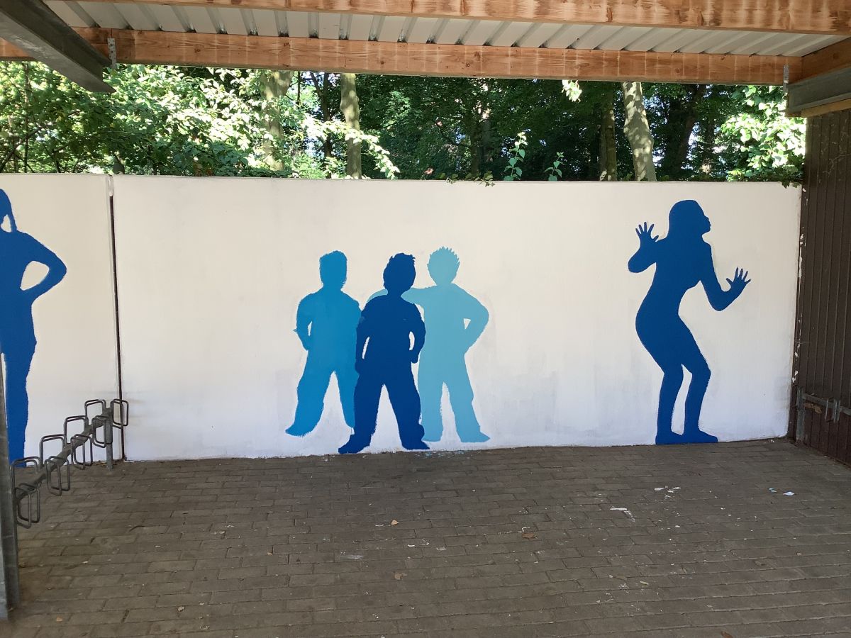 Wir, die 8a, haben in der Projektwoche vor den Sommerferien zum Thema „Unsere Schule soll schöner werden“ die Wände der Fahrradständer neugestaltet.