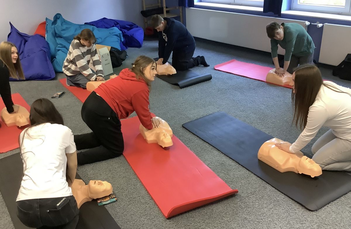 Den Umgang mit den Erste-Hilfe-Themen Atem-und Kreislaufstillstand und die Reanimation an entsprechenden Übungspuppen konnte der Biokurs aus dem 9. Jahrgang nun im unterrichtlichen Kontext zu den Themen Herz-Kreislaufsystem und Organspende üben und dabei wichtige Erfahrungen bei Wiederbelebungs-Maßnahmen sammeln. Mit den uns zur Verfügung gestellten Trainingspuppen soll diese Übungsaktion auch in anderen Unterrichtsfächern weiter erprobt und durchgeführt werden.